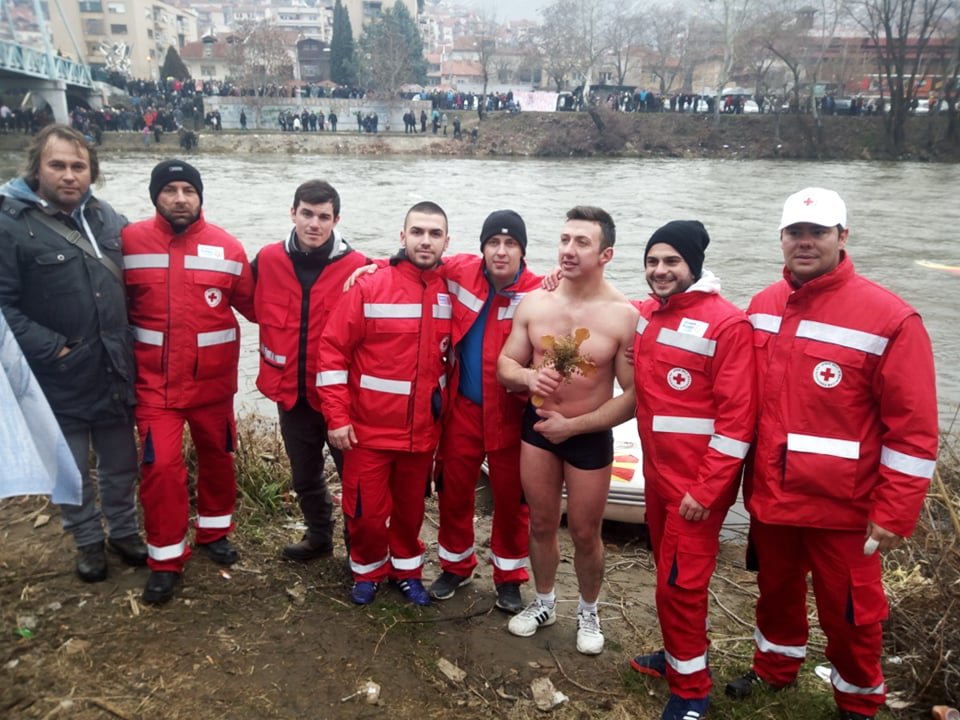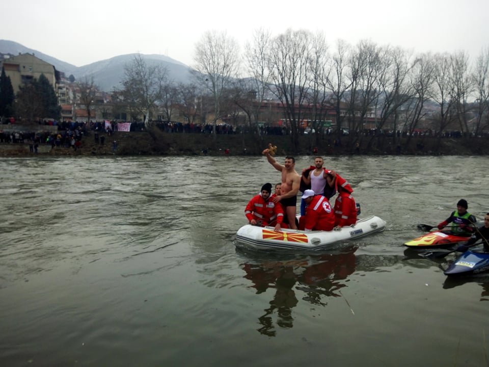 Првата беше безбедноста на сите учесници во Богојавлениот водосвет кои скокнаа во водите на Вардар по светиот крст. Оваа задача ја извршија петмина волонтери од тимот за безбедност на вода, благодарение на добрата соработка со Општина Велес и Територијалната противпожарна единица кои како секоја година ни позајмија моторен чамец.