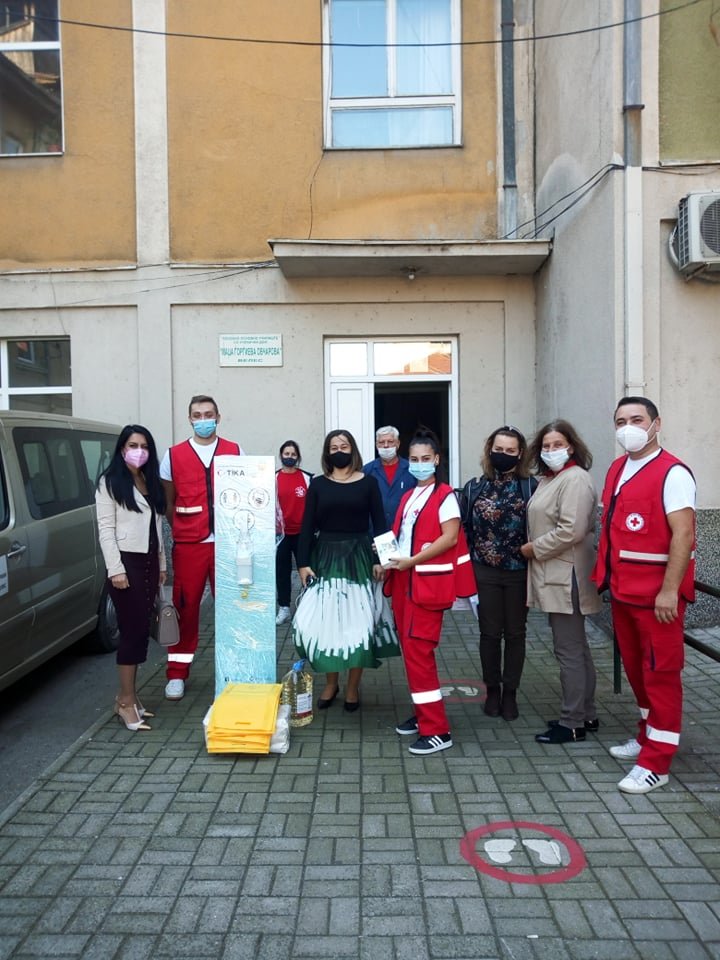 Волонтерите на Црвен крст на Република Северна Македонија Општинска организација Велес во изминативе денови извршија достава на донација во 11 основни училишта и во Детските градинки „Димче Мирчев“. Сталка за дезинфекција, безконтактен термометар и дезинфиционо средство добија четири основни училишта во Велес, како и училиштата во Горно Оризари, Чашка. Богомила, Горно Јаболчиште, Иванкови, Градско и Посебното основно училиште „Маца Овчарова“.